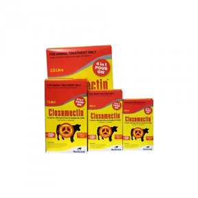 Closamectin Pour-on for cattle is a pour-on solution used for the treatment and control of mixed trematode (fluke) and nematode or arthropod infestations due to roundworms, lungworms, eye worms, warbles, mites and lice. Closamectin Pour-on uses a unique mixture of ivermectin (for the treatment of lice, worms and ticks) and closantel (for the treatment of liver fluke and gastrointestinal roundworm).Closamectin pour-on is highly effective and extremely easy to use compared to injections or drenches. The ease and efficiency of this product will save farmers both time and money.
